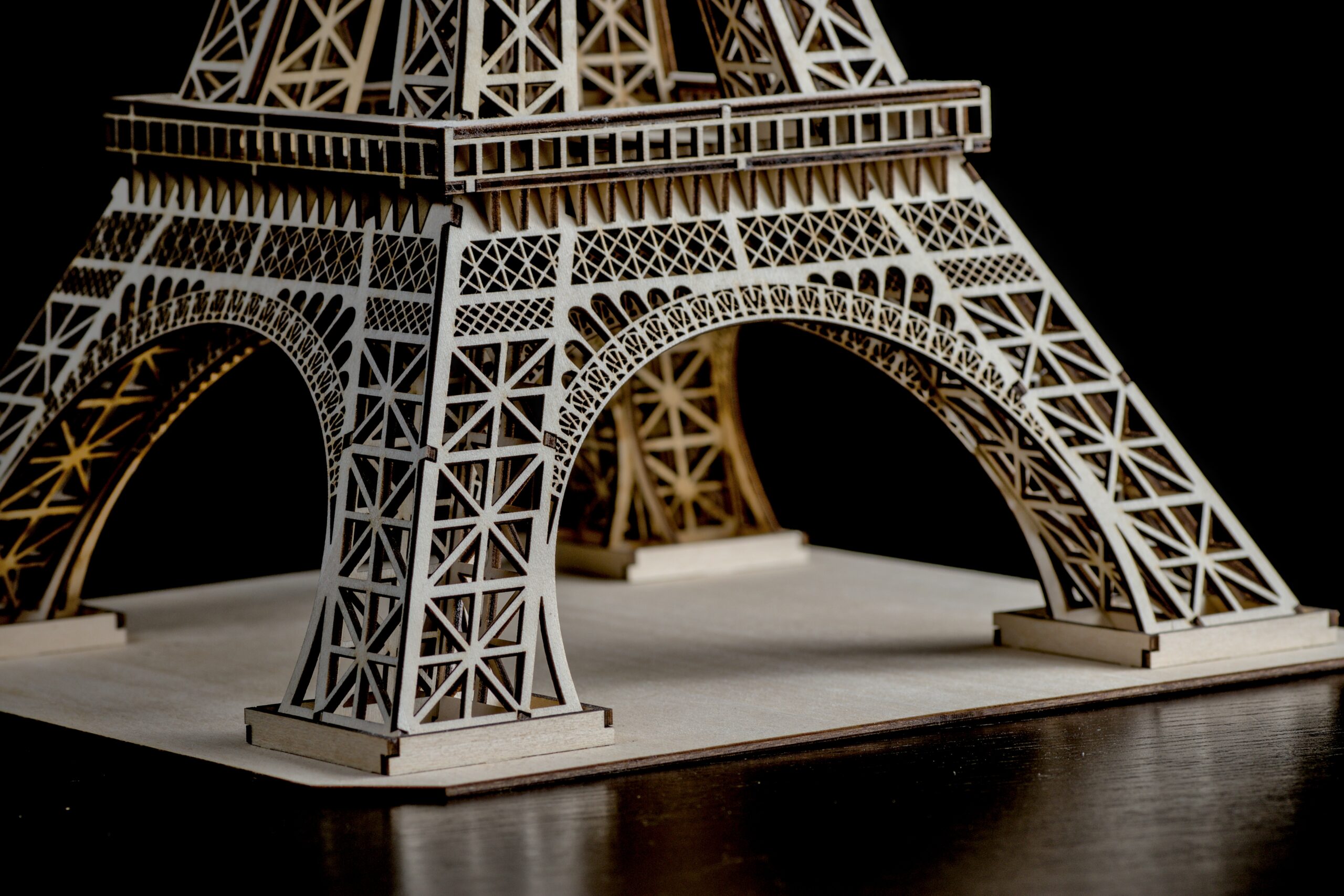 Finesse du LASER : Chaque poutrelle et détail de la structure est découpé avec une extrême minutie, rendant hommage à la finesse du monument original.
